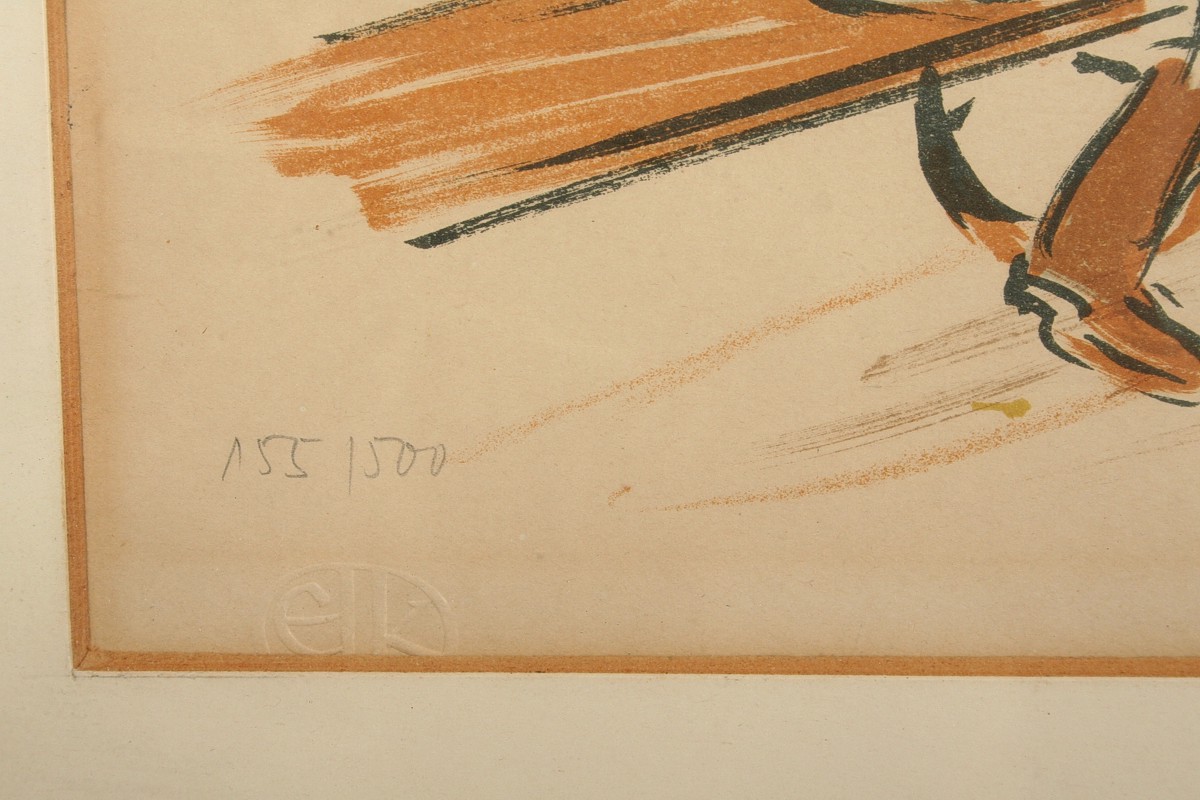 krajina s koňským povozem, barevná litografie na značkovém papíře, ve výřezu 34 x 49 cm s rámem 45 x 59 cm, autor Vojtěch Sedláček, podepsáno vpravo dole Vojt. Sedláček, na zadní straně nalepena stará reprodukce s popisem, rámováno v původní paspartě a rámu pod sklem