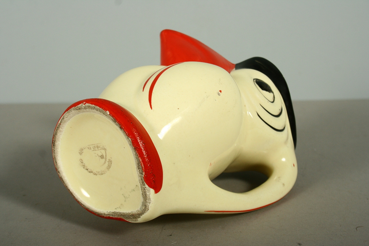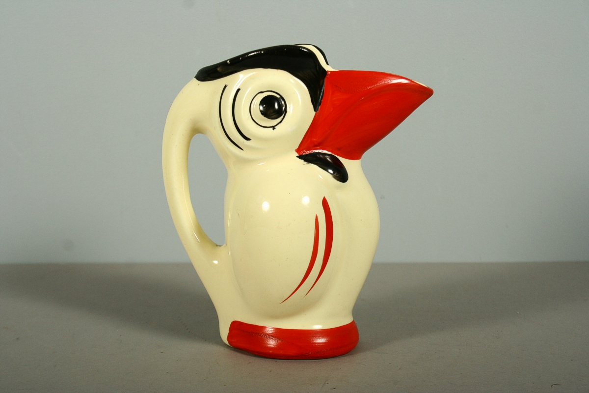 džbánek tvaru tukana, malovaná keramika ve stylu art deco, značený tištěnou značkou Ditmar Urbach, 15 x 14 cm