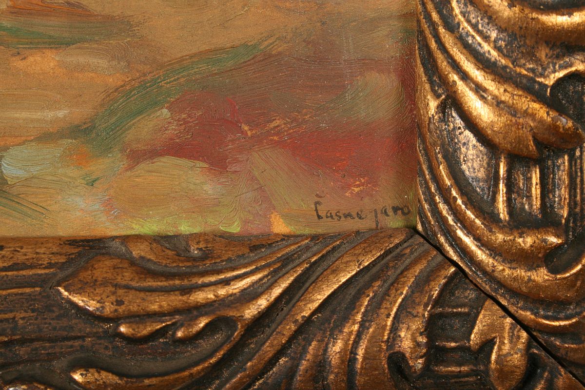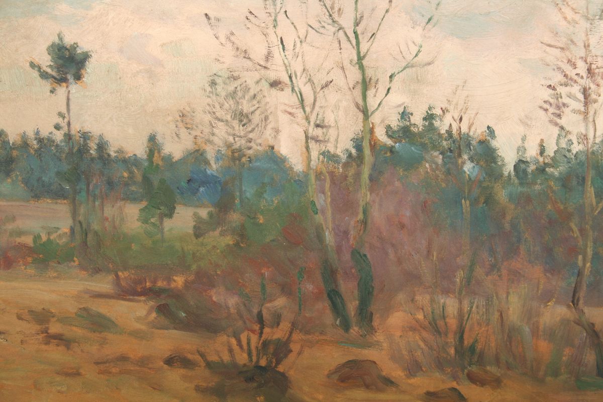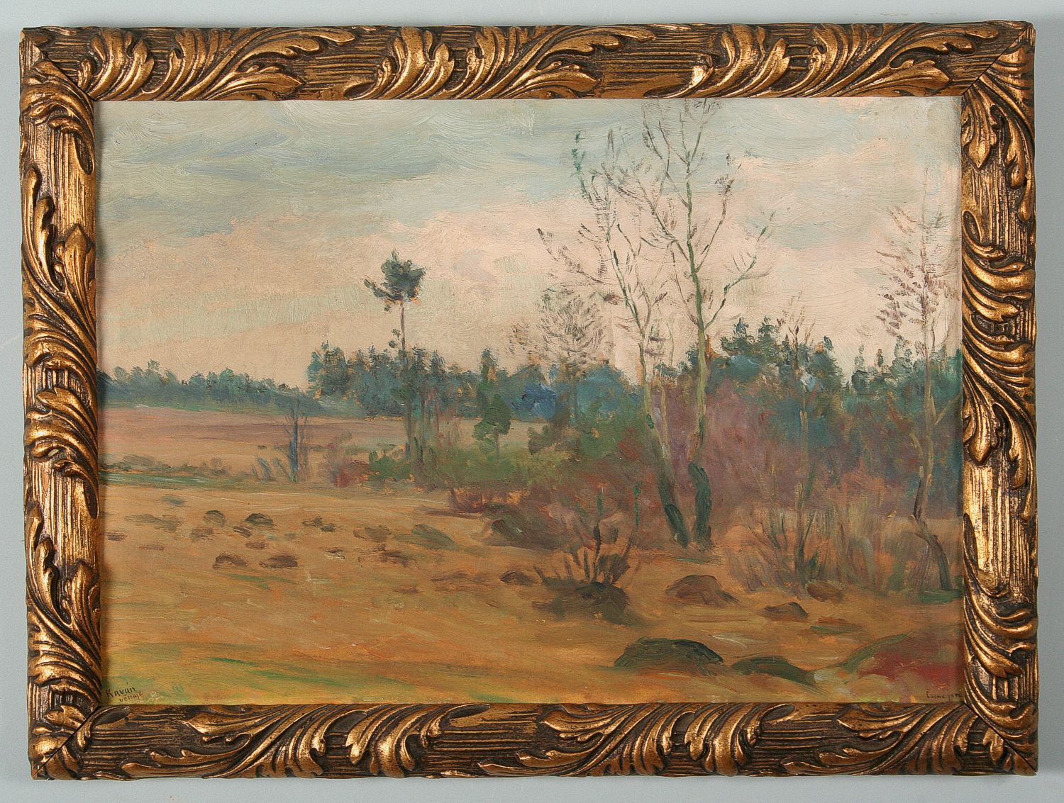 obraz krajiny v časném jaru okolo roku 1905, olej na tenké lepence, 27 x 38 cm s rámem 33 x 44 cm, autor František Kaván, podepsáno vlevo dole Kaván věnuje a vpravo přípis Časné jaro, rámováno v původním rámu, autorství a dedikace konzultována a potvrzena PhDr. Michaelem Zachařem, vzácně se vyskytující ranná práce Fr. Kavána okolo roku 1905, obraz pochází z významné náchodské pozůstalosti