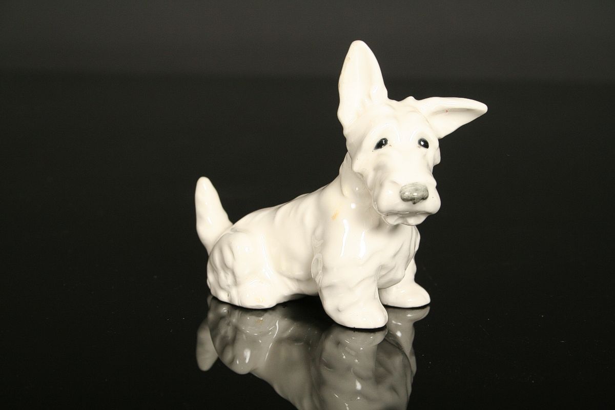 soška psíka, malovaná a glasovaná keramika ve stylu art deco, značeno KERAMOS Wien, 9,5 x 8 cm