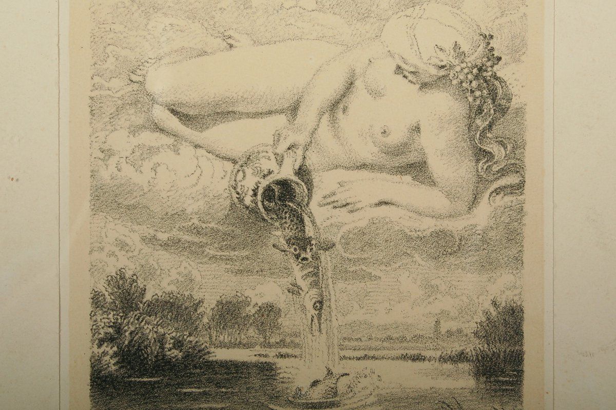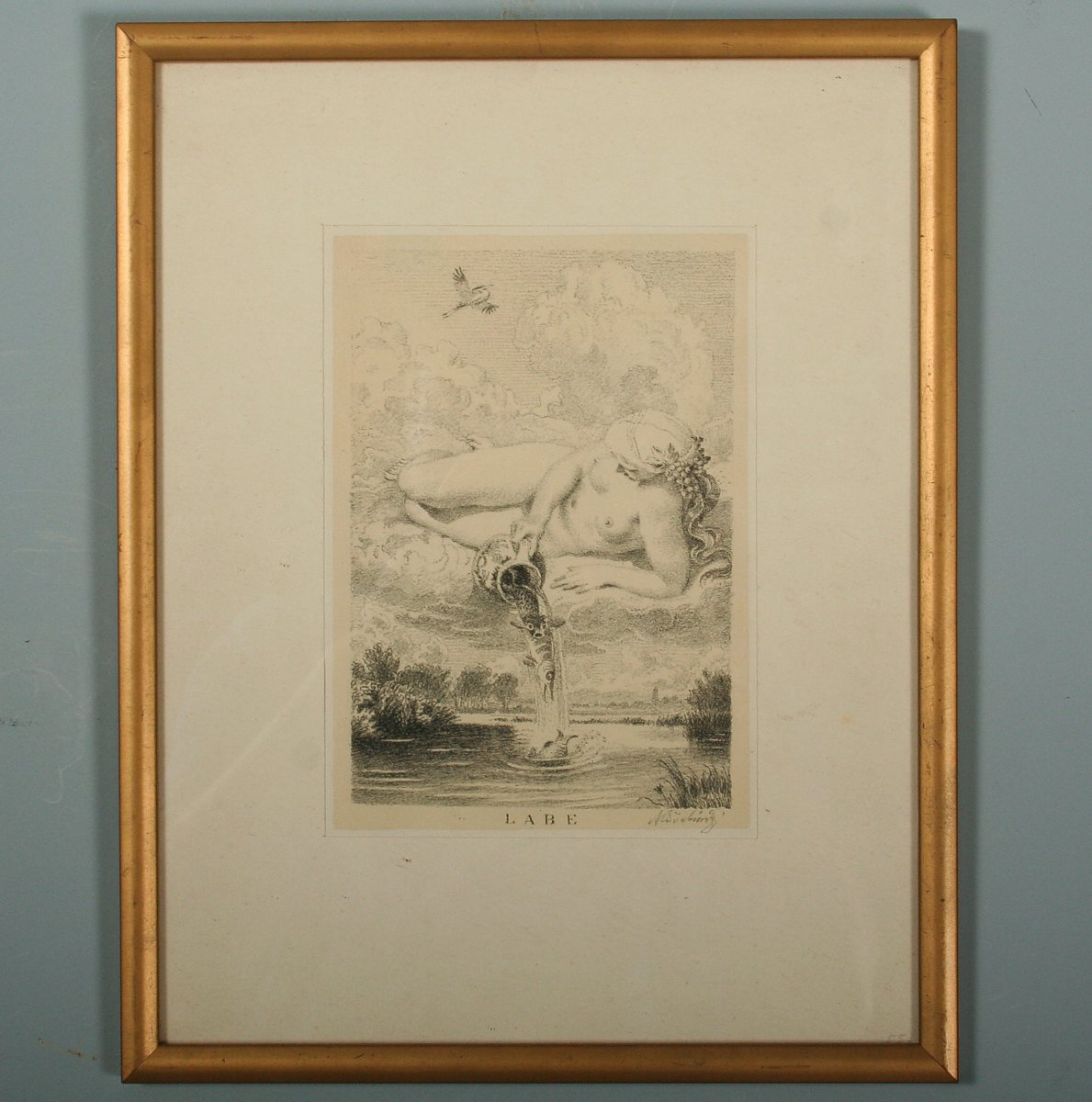 alegorie Labe, litografie na papíře 19 x 13 cm s rámem 34 x 27 cm, autor Max Švabinský, podepsáno v vpravo dole tužkou M. Švabinský, rámováno v paspartě a rámu pod sklem