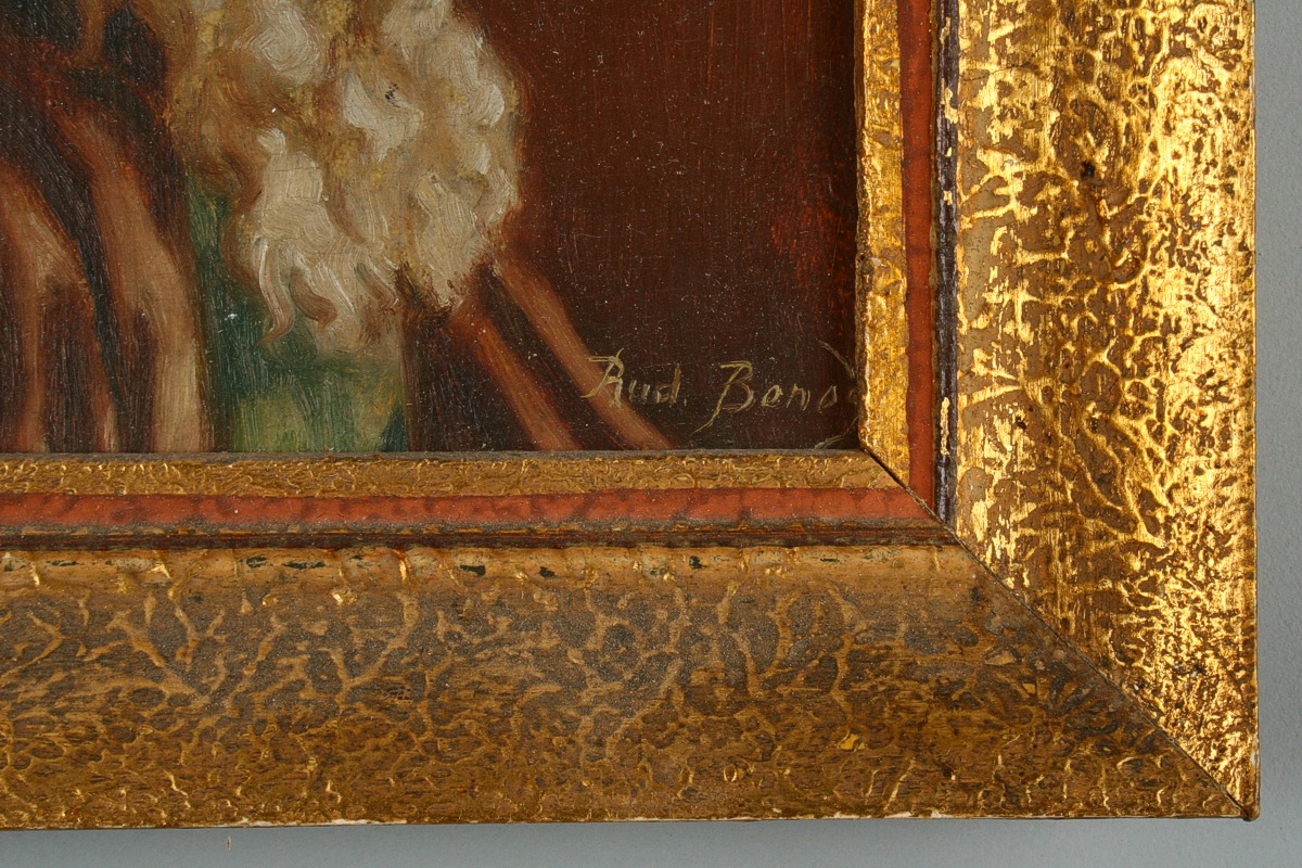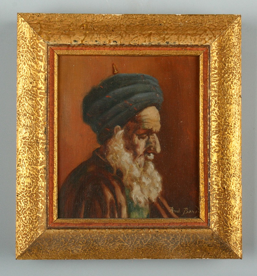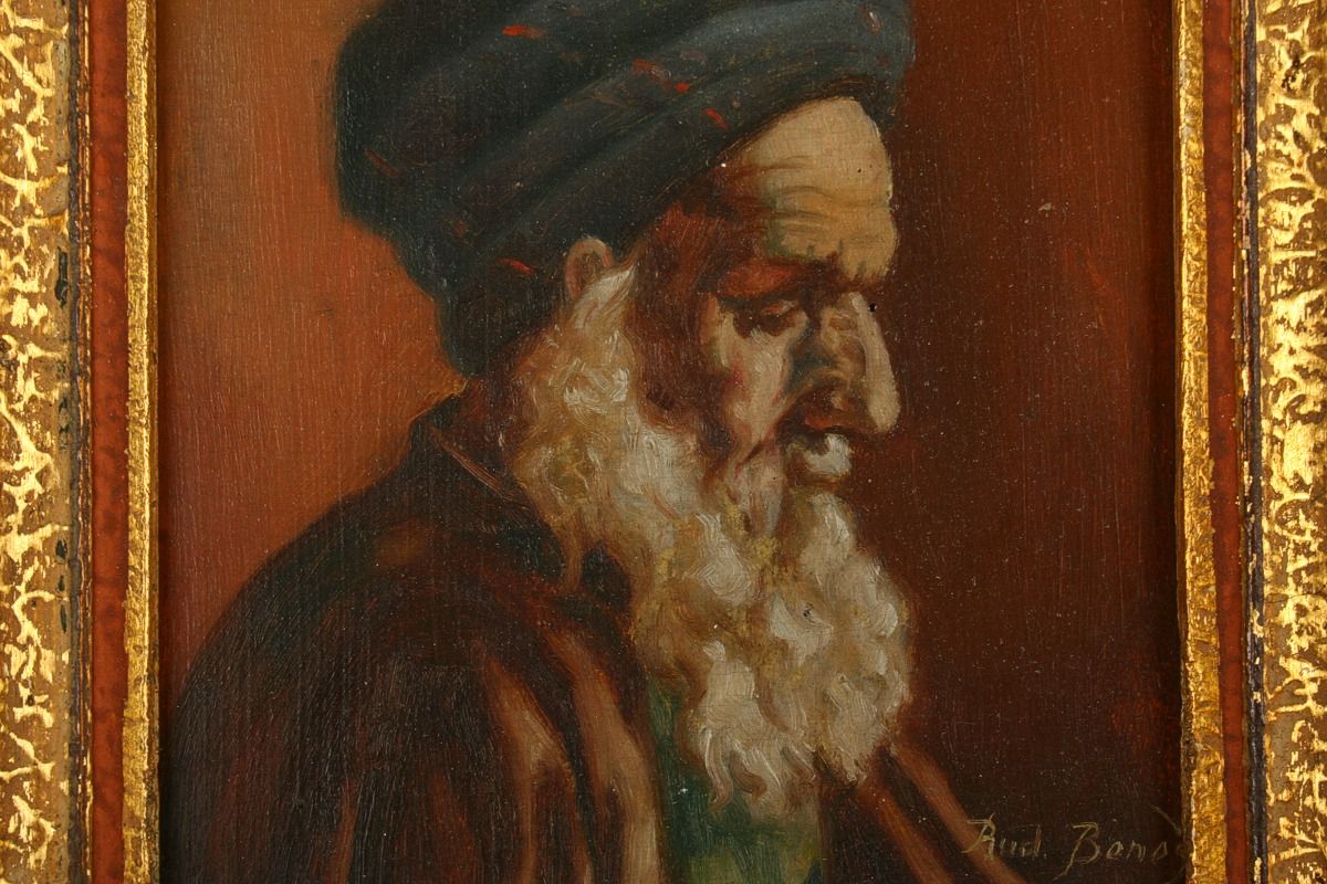 starý obraz, portrét starce patrně Araba, olej na dřevěné desce, 17 x 15 cm s rámem 24 x 22 cm, autor Rudolf Beneš, podepsáno vpravo dole Rud. Beneš, rámováno v původním rámu