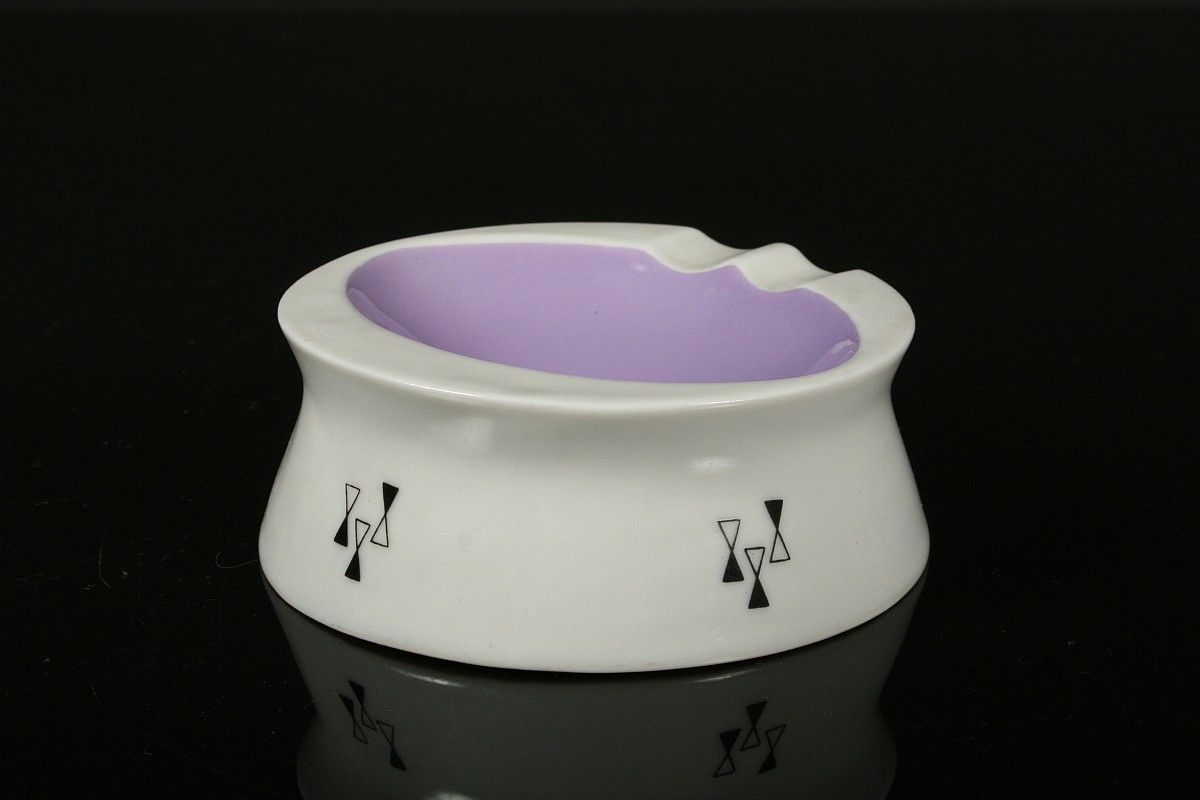 stylizovaný porcelánový popelníček, autor návrhu Jaroslav Ježek, značeno starou tištěnou značkou Royal DUX Duchcov, 60 - 70. léta 20. století, 10,5 x 4 cm