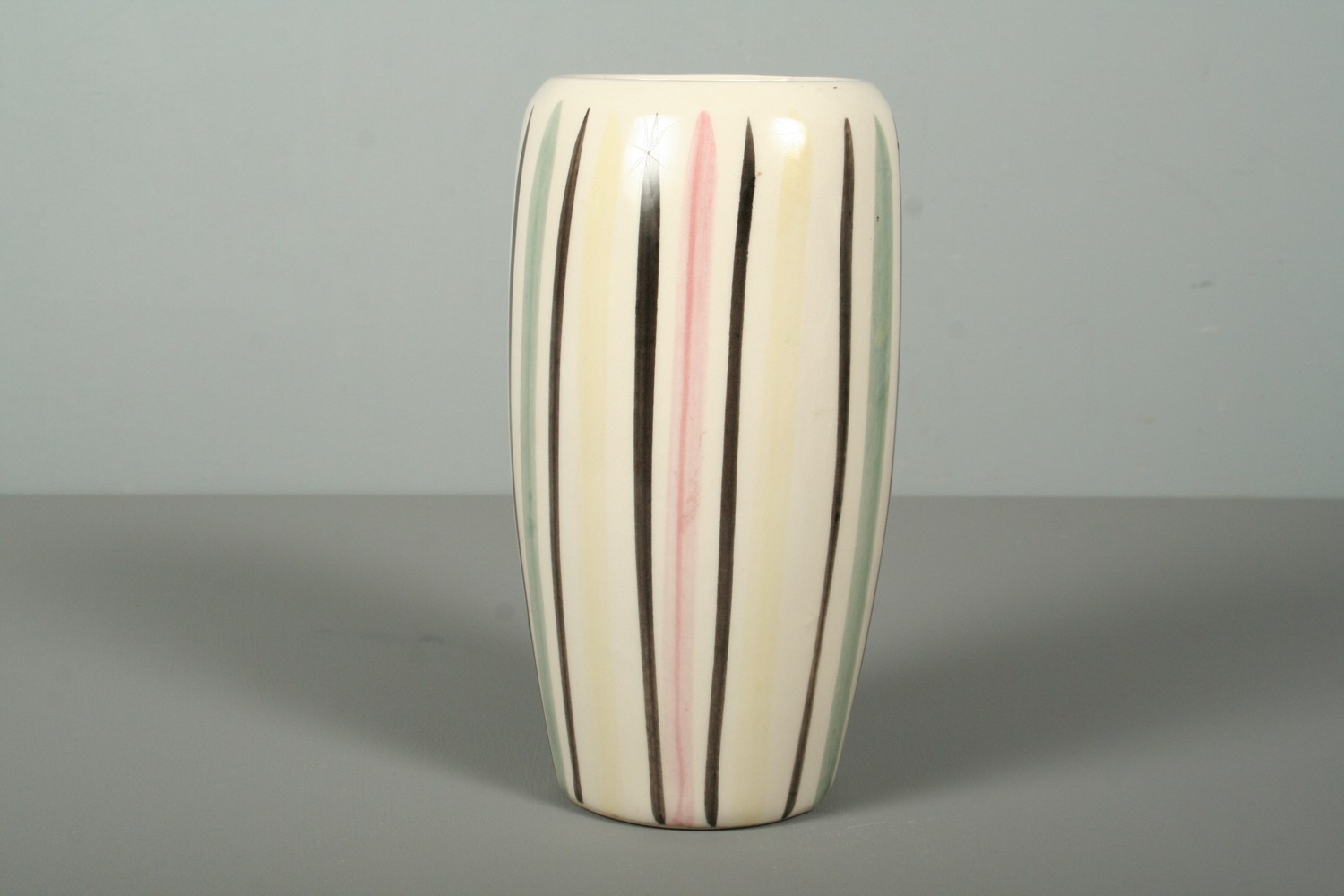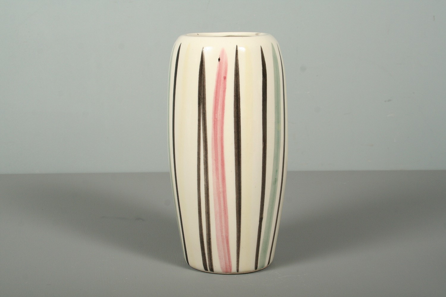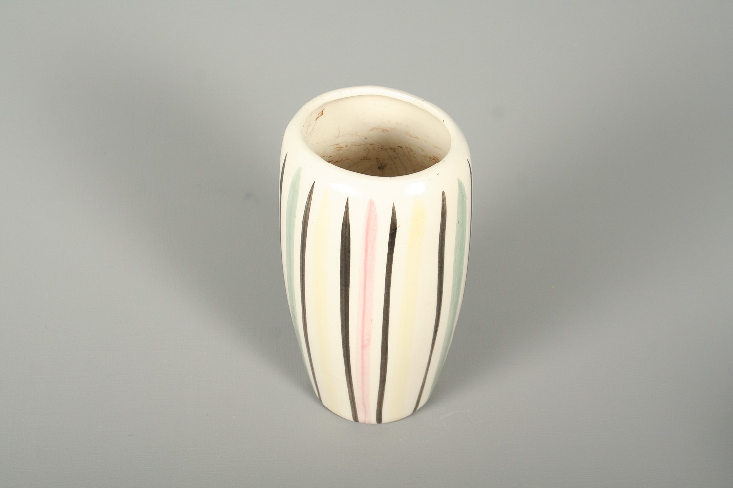 váza ve stylu "Brusel", malovaná glazovaná keramika, neznačená, 60. léta 20. století, 20 cm
