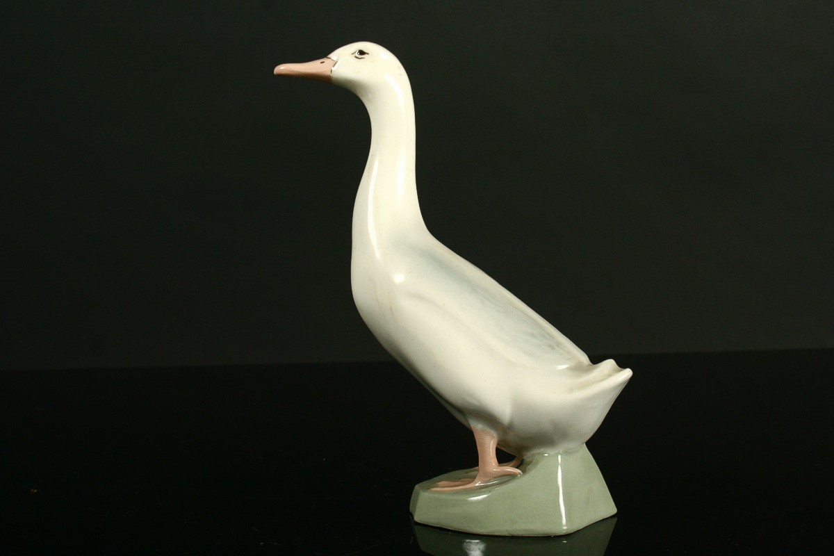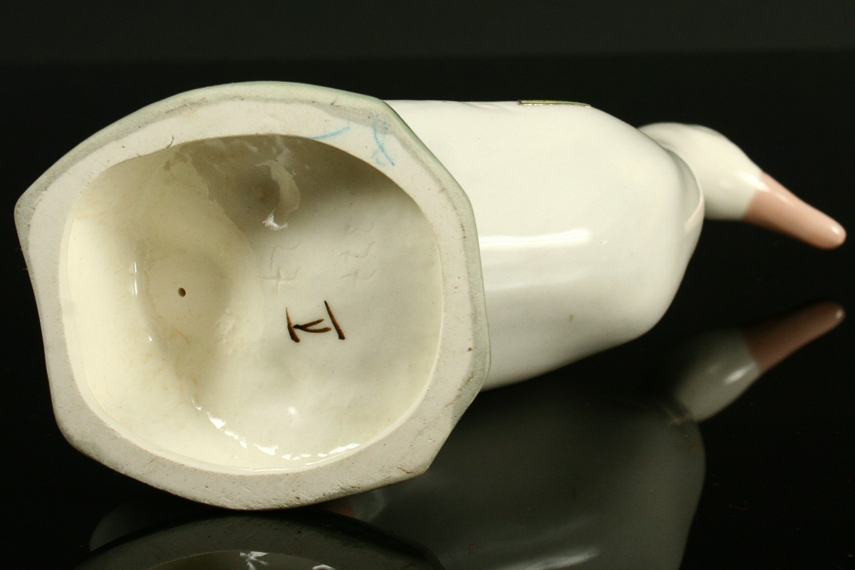 soška husy, malovaný bílý porcelán, neznačený produkce Royal DUX, 17,5 cm