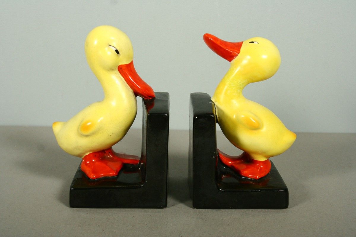 držátka na knihy s kačenkami, malovaná keramika, značené na spodní straně tlačenou značkou Oeslau Goebel, 14 x 18 cm