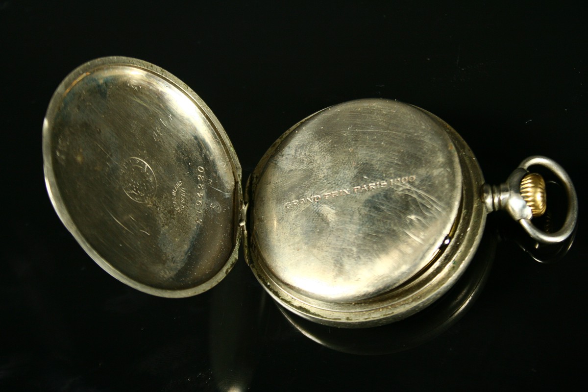 kovové kapesní hodinky dvou plášťové, smaltovaný ciferník značený ZENITH, stroj funkční značený ZENITH, na pláštích značení a grand prix PARIS 1900, s očkem 70 x 51 mm