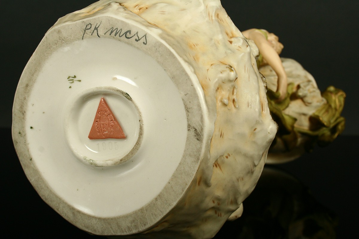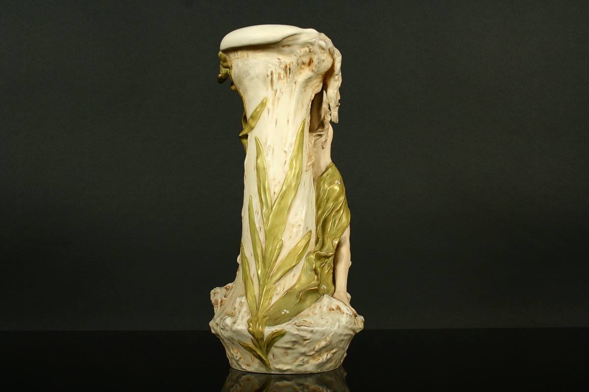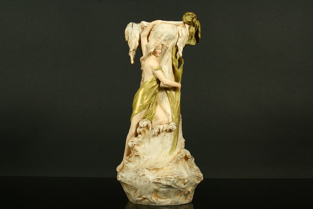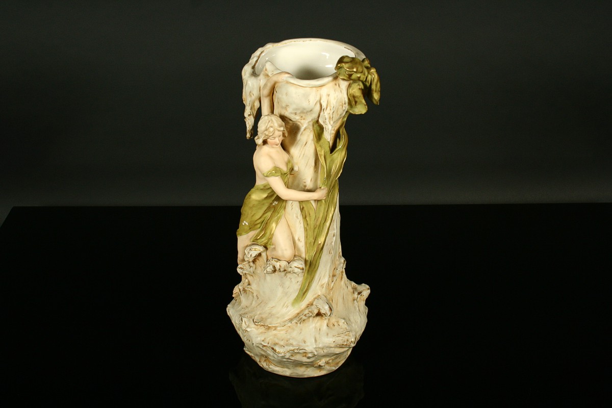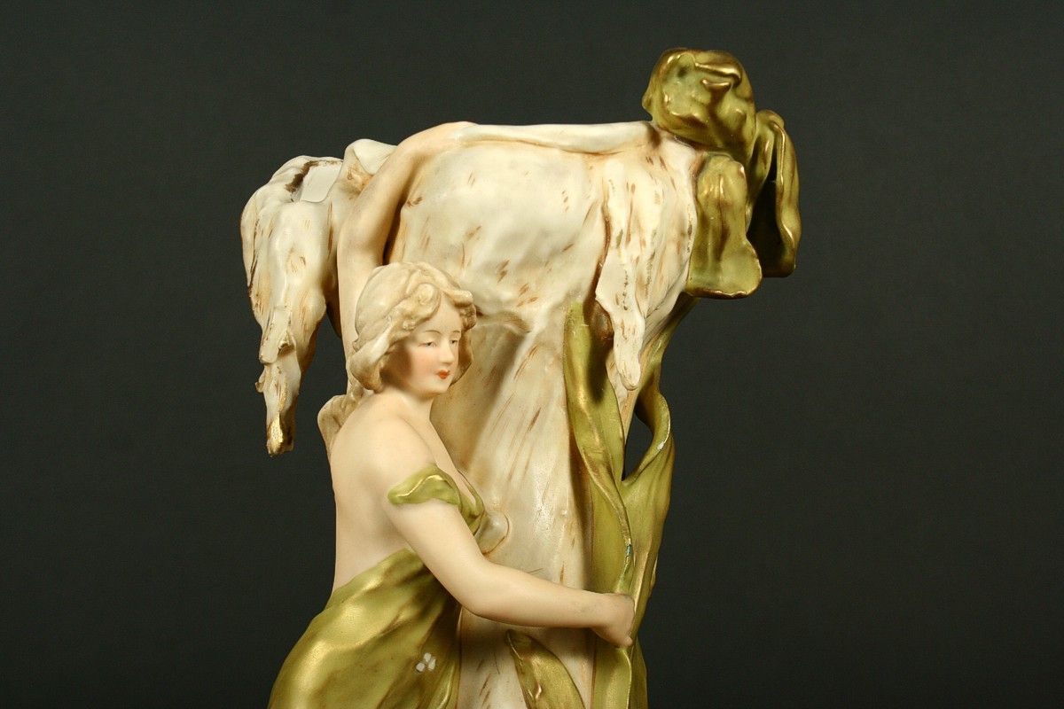 velká figurální váza, porcelán bílý malovaný v tělových barvách, částečně zlacený, značeno tištěnou a tlačenou značkou E ve velkém trojúhelníku  Royal Dux Duchcov, 41 cm