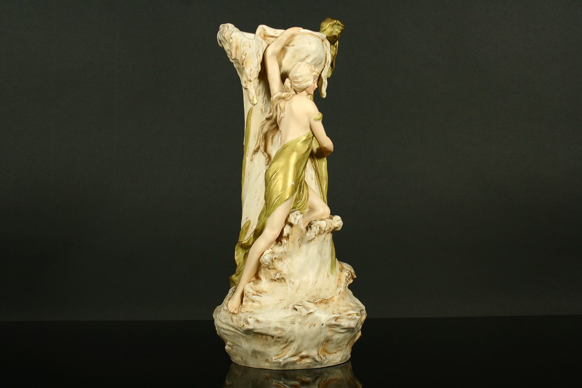 velká figurální váza, porcelán bílý malovaný v tělových barvách, částečně zlacený, značeno tištěnou a tlačenou značkou E ve velkém trojúhelníku Royal Dux Duchcov, 41 cm