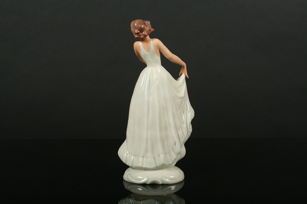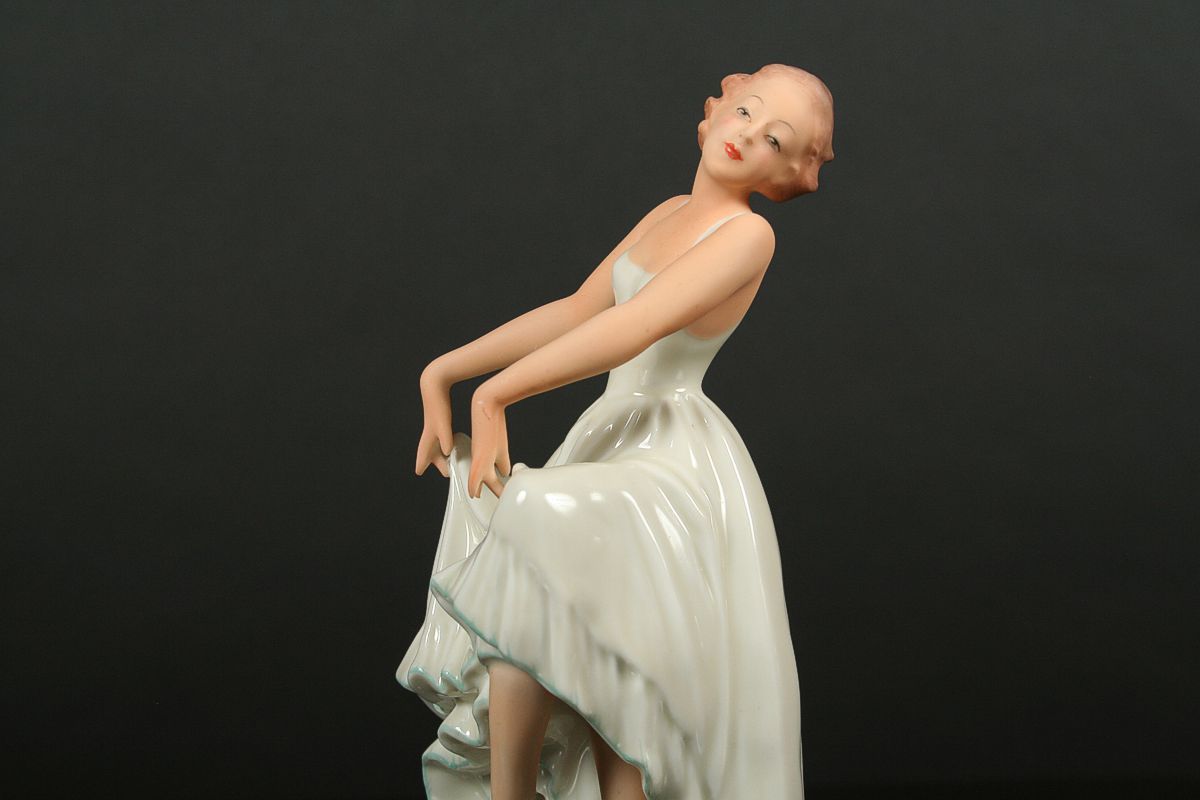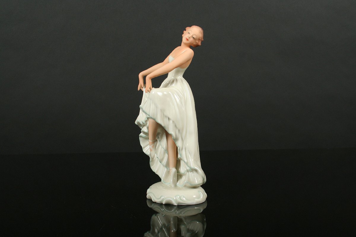 elegantní tanečnice art deco, býlý porcelám malovaný v tělové barvě, na dně značná tištěnou značkou Pirkenhammer, 19,5 cm