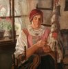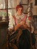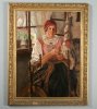 starý obraz přadleny u okna, olej na plátně, 84 x 62 cm s rámem 100 x 80 cm, autor Joža Koudelka, nepodepsáno obraz získala rodina přímo od autora, rámováno v původním zdobeném rámu