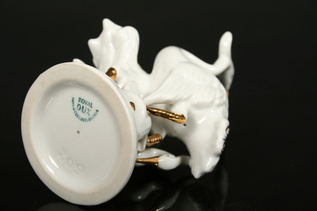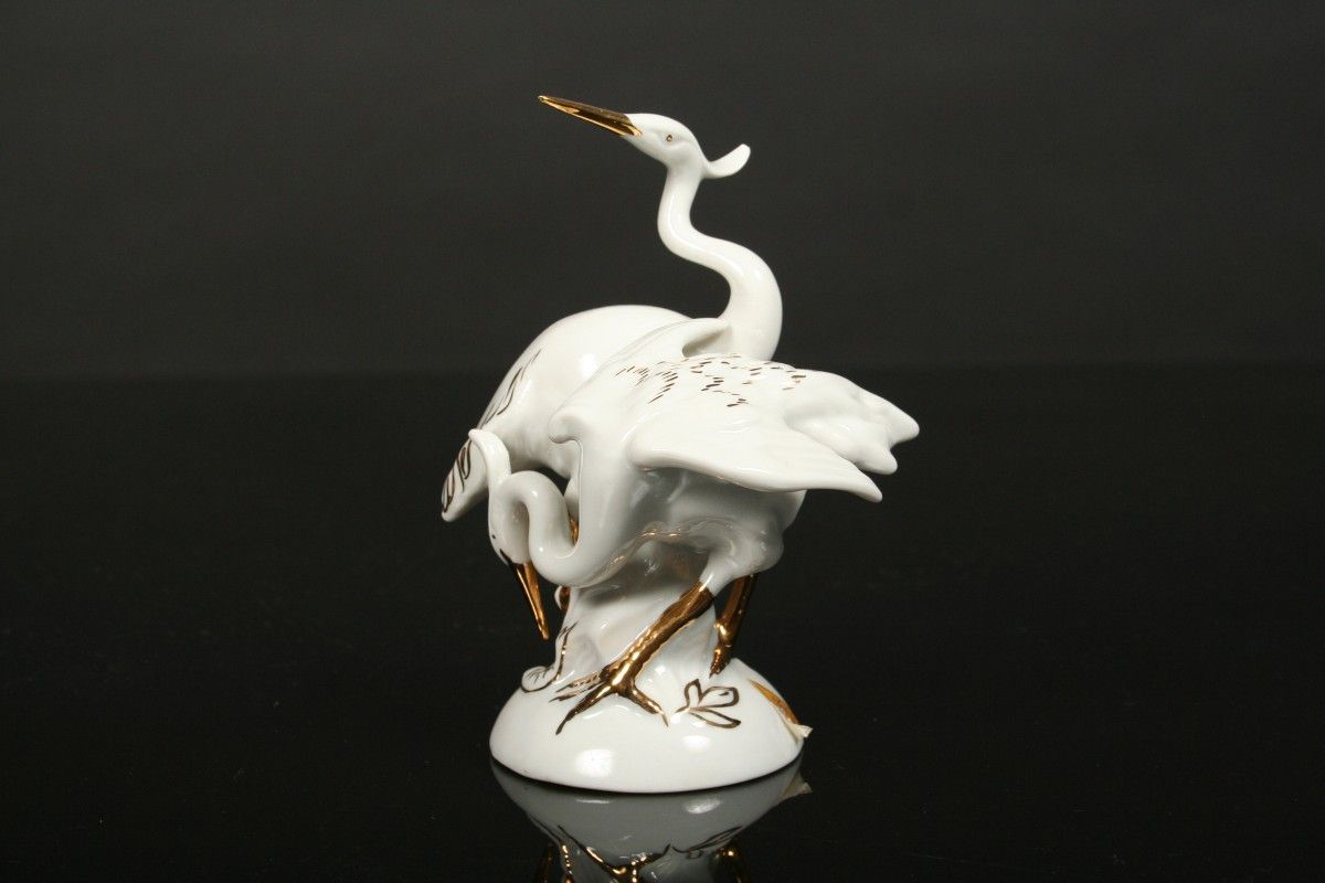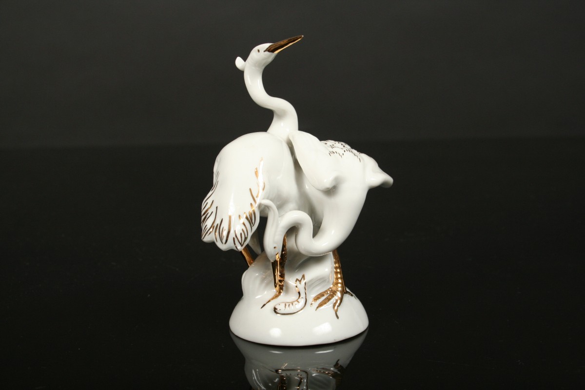porcelánové sousoší volavek, bílý porcelán se zlacenými detaily, značeno na spodní straně značkou a vinětou Royal DUX Duchcev, 12 cm