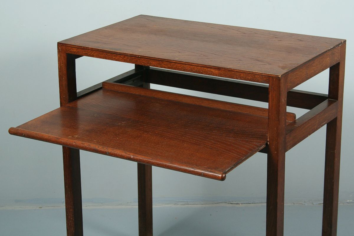 designový stolek pod rádio, autor návrhu Jindřich Halabala, výroba UP závody označení h-174, obdélníkový stolek s výsuvnou deskou, lemovaná úchytem, 30. léta 20. století, v původním pěkném stavu, 75 x 65 x 40 cm