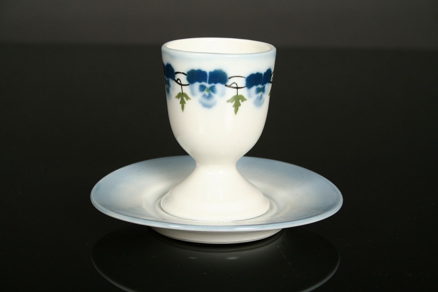 stojánek na vajíčko zdobený rostlinným motivem pastelovými barvami pod glazurou, porcelán, značený Krautzberger Teplitz, 7,5 x 11 cm